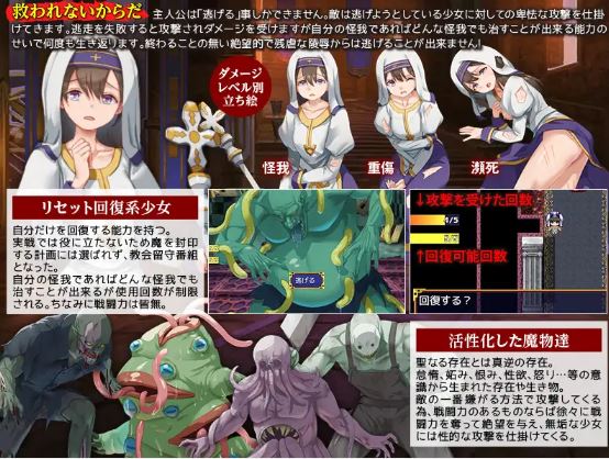 被困在这座变成活跃魔巢的教堂里的,是几位见习圣女,以及一位只会自我治疗、在实战中毫无用处的圣女。一场